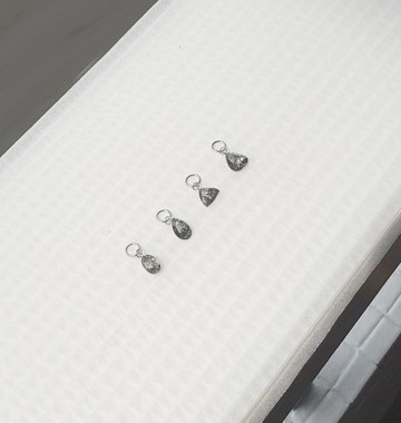 VOID – where imperfections hold the universe.沒有鑲嵌,沒有框架,沒有界線。 直接在石心打孔的椒鹽鑽, 讓原礦的稜角與內裡的宇宙如實展現。每一顆內含物都是獨一無二的宇宙碎片, 真實、透明、自然呈現。Void 椒鹽鑽墜子鑽石:灰椒鹽鑽,約 0.3~ 0.20克拉. 約0.5~0.7公分.金屬材質:18K白金.備註:此款單賣墜子.