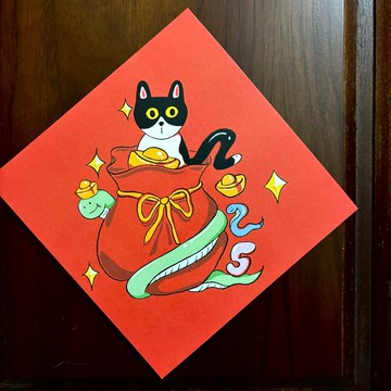 2025蛇年貓咪斗方春聯新的一年,讓貓咪帶給你滿滿的祝福家中裝飾或送禮都很適合靈感來自設計師養的三隻不同花色貓咪尺寸:15*15cm材質:細紋紙