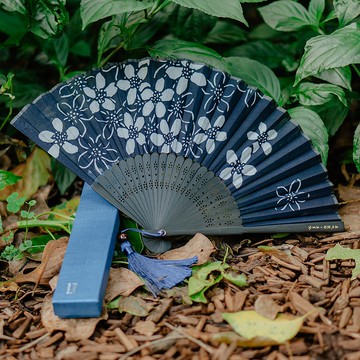 多花色紮染 植物拔染 indigo藍靛染手工制 隨身清涼 複古摺疊扇