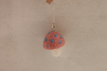 天然植物染蘑菇手機吊飾 粉紅色 ,茜草,藍染 訂製款