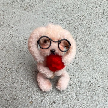 淺粉紅垂耳兔戴眼鏡坐著6cm-毛根扭扭棒手作/髒萌流浪動物園