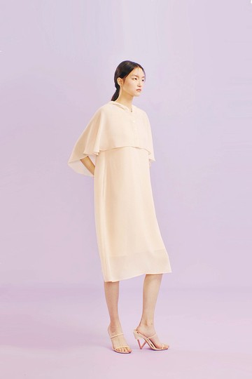 淺黃圓弧袖短洋裝