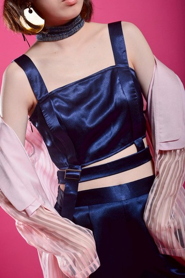 這是NO.42的第一批系列-**[M E S S . W I T H . P I N K]** 顏色/深藍材質/100%聚酯纖維 洗滌方法/ 此商品請放入洗衣袋,於洗衣機洗滌。此商品請與同色系衣物一起洗滌。 此商品不可乾洗。 此商品不可漂白。 此商品熨燙時請墊上一層布。其他注意事項/ 各種螢幕顯示器所呈現的商品照可能會產生色差,商品顏色請以實品為主。 退換貨請確保包裝完整(含商品、包裝、配件、贈品等)之商品寄回給我們,若包裝非完整狀態將可能無法提供退換貨。 **此商品售完即斷貨** 如有疑問,可以利用站內信詢問我們。 設計師白天還有工作,無法即時回覆站內信詢問,請耐心等候回覆。