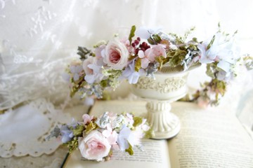 婚禮花飾系列~粉藍色不凋玫瑰花環手腕花