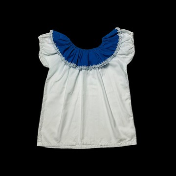一字領藍白蕾絲上衣