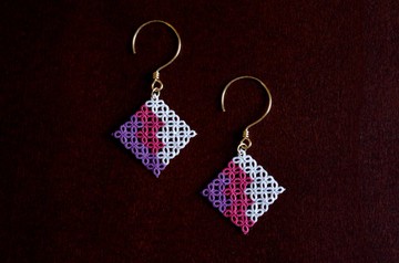 手染梭織花邊馬賽克耳針紫苑