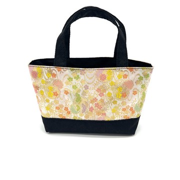 京都 / 西陣織 / Kinran / 迷你包這是一個由美麗的金色蘭花面料製成的迷你包。帶一個小包,可以用來小郊遊一個可以裝錢包、鑰匙、智能手機等的包。襯裡有一個內袋。它是堅固的,因為它使用襯布作為外部材料。* 錦緞是一根金線,纏著金箔,或它是一種織物,其圖案被編織成切碎的金箔。在紡織品中,華貴的金色花紋尤為華貴。它是眾多面料中最好的梭織面料之一。* 圖案一一不同。材料外層材質西陣錦100%滌古無金襯裡 100% 棉尺寸長約 16 cm 寬約 20.5 cm (下) 寬約 26 cm (上) 把手約 27.5 cm機長約 7 cm