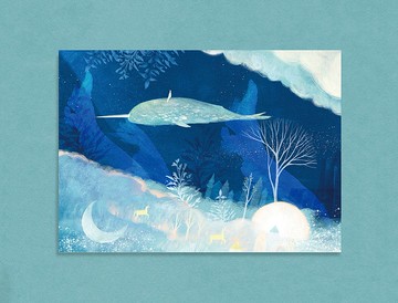 插畫明信片 - 角鯨的陪伴角鯨陪伴著旅人,游過城市、大海與森林,靜靜地給予陪伴。-.材質:350P 厚象牙 .尺寸:10.5x14.8 cm