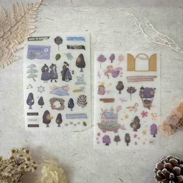 \關於創作/不是每段旅程都需要終點有時一棵樹,一扇窗就能成為夜的落腳處。每個到訪的你,都是故事裡的一道光。我們把最喜歡的元素都放進去了你的森林,你決定吧!\關於材質及尺寸/尺寸:每張10 cm x 15 cm數量:1份2款圖案,各1張,加一張空白明信片,可以拼貼用~材質:塑膠\關於轉印貼紙使用方式/1.選好想要轉印的圖案2.剪或不剪圖案都可以3.撕掉下層白色底紙,直接放在要轉印的紙張上4.以鈍物、指甲、尺平均施壓刮平5.先拉開透明片一角確認圖案是否有完整轉印,如果透明片有圖案殘留就蓋回再次加壓6.拉起上層透明片,就完成啦⁽⁽ ◟(∗ ˊωˋ ∗)◞ ⁾⁾效果就跟畫出來、影印上去一樣幾乎看不出貼紙的痕跡,也可以圖案重疊運用真的超療癒的過程~\其他注意事項/〃轉印後的圖案如受到刮擦會破損,請務必注意〃拍照效果和螢幕影響可能造成色差,商品皆以實體為主〃偶爾底紙會有些微波浪起伏屬正常現象,為轉印貼紙在上膠和貼合底紙製程時產生,不影響轉印效果