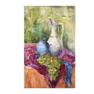 靜物與葡萄和水壺原畫水彩藝術品食品藝術