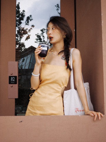 Moonsee 氣質露背串珠系帶收腰顯瘦亞麻夏日度假吊帶連衣裙女