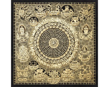 ### 神圣描绘:呈现了神圣的**咒语曼荼罗**——一幅由神圣音节与几何和谐组成的象征性灵性图案。### 精神意义:曼荼罗中铭刻的每个咒语都蕴含着灵性意图的振动,促进清晰、专注以及内在真理的实现。### 正宗工艺:由喜马拉雅工匠使用古老技法精心手绘,采用天然颜料绘制于高品质棉布画布上。### 转化能量:营造出强大的冥想氛围,成为唱诵、反思与正念修习的灵性工具。### 理想摆放位置:为冥想区、瑜伽室或安静角落等神圣空间增添神圣共鸣与文化内涵。### 定制选项:提供多种尺寸和装裱风格,以契合您的祭坛空间、个人意图或送礼需求。### 规格:- 尺寸:50✕50 厘米 - 由尼泊尔熟练艺术家创作 - 材质:棉布画布,天然石色 - 适用于冥想、瑜伽和家居装饰 ### 装裱:- 传统锦缎可装饰您的唐卡画作 - 提供多种颜色和品质的丝绸锦缎选择 - 锦缎价格从 50 美元起,视质量和尺寸而定 ### 配送:- 免费送货 - 预计 2 至 4 个工作日内送达,全程投保,安心无忧 ### 退货政策:- 30 个工作日内接受退货 ---### 店铺信息:“感谢您光临我们的 Pinkoi 商店!探索我们多样化的唐卡收藏,发现用心制作的珍品。从复杂手工制作的唐卡到受佛教启发的艺术品,总有一款适合每个人。 您的支持对我们至关重要。我们随时为您提供帮助——如有任何问题,请随时询问。感谢您在我们旅程中的支持。浏览我们的商店,找到您心仪的下一件珍藏!” 愿一切众生幸福!