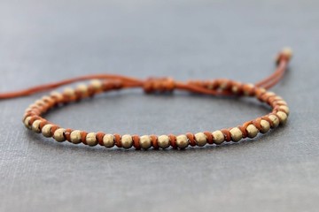黃銅串珠手鍊,米色編織編織手鍊,男女男女通用最小手鍊
