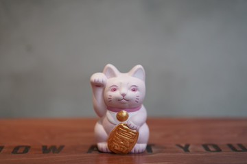 【白晶億両】日本清水燒招財貓 | 花結晶 白 億万両 左 特小