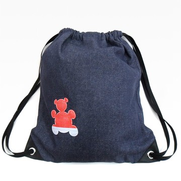 紅白藍330 X 又一山人 - 熊白藍牛仔布袋 B (小熊) 藍色