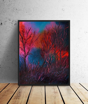 煙霧森林油畫(畫布、松樹風景畫)– 由 Nadya Ya 創作