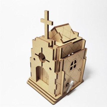**I 材質介紹 I**3mm密底板,Sankyo音樂機芯**I 完成尺寸 I**6.2x7.5x14.5cm**I 包裝內容 I**木板零件,音樂機芯,螺絲,發條,白膠,砂紙,說明書**I 商品介紹 I**運用雷射切割與雕刻工藝製作的教堂造型音樂盒,原木色澤特別耐看,並享受自己組裝的樂趣。另外可以用壓克力顏料增添色彩,別有一番風味~**I 商品用途 I**公司企業活動及尾牙精緻贈品,文創商品,周邊系列商品,客製化紀念品,過年節慶個性商品等**I 注意事項 I**1.雷射切割及雕刻產生的自然焦痕皆可以由砂紙磨除。2.有些零件較小,請務必慎防兒童誤食。3.每批密底板原木色都不同,故會與照片有些許色差。4.密底板性質怕水,請遠離水源。
