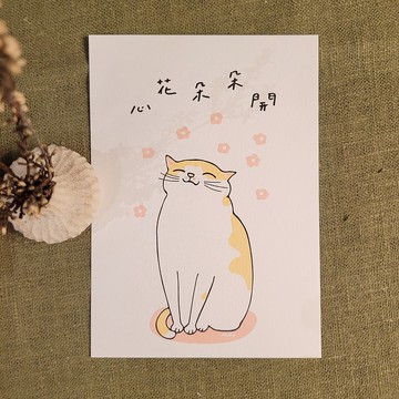 橘貓賞花圖//韓國傳統民畫貓咪藝術家 貓咪長型明信片