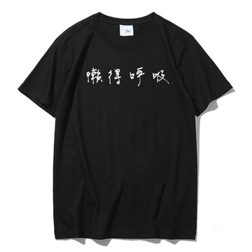 懶得呼吸 短袖T恤 黑色 中文 文青 文字 漢字 英文 短T