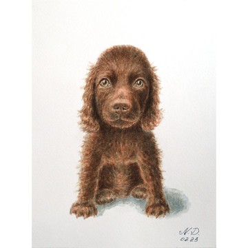 狗西班牙獵狗繪畫博美犬粉彩原創藝術動物原畫藝術