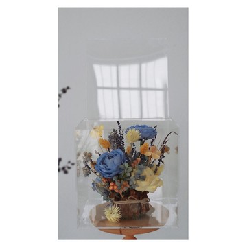 壓克力透明花盒- 永生乾燥花材無色彩的盆器,簡單地凸顯出花材本身的色彩,更適合依各種空間調性訂製,就像黑灰白服裝一樣百搭尺寸:20*20*20 公分