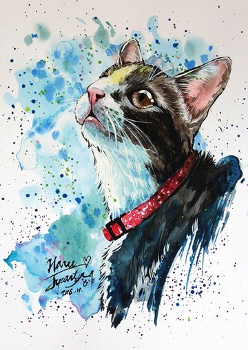 貓咪原創水彩、搞怪寵物肖像、小貓畫、手工水彩、原創水彩