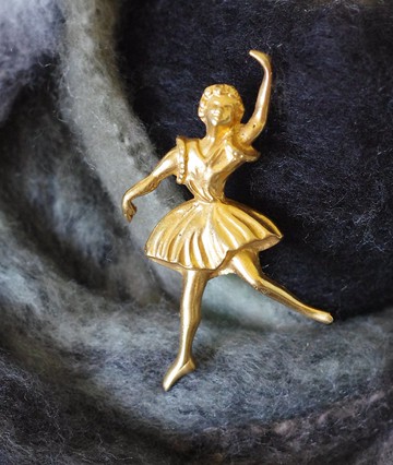 購自法國。線條優美的芭蕾舞者。材質是金屬、鍍金。有厚度,狀況不錯。背面比較舊,不影響使用。6x5公分。另外,想跟大家分享一下背面這個安全扣環。這個扣環名字是Trombone Clasp,也可以稱它為Push-pull safety clasp。很常在法國珠寶及歐洲珠寶看到這種設計。在1940年廣泛的被使用著,連老香奈兒也有這種設計喔!大家可以看一下手邊的別針有沒有這種裝置?我覺得是很棒的設計😊* 清潔方式-使用乾布擦拭。-勿使用拭銀布,『不可以』戴去海邊及泡溫泉,也不能戴著在雨中起舞。-戴完請清潔後,放在夾鏈袋保存。-存放地點請保持乾燥。*小叮嚀賣場每一樣商品都是檢查過,確定使用正常才會販售,故無法因為個人因素退款退貨哦。因攝影的光線及每台電腦顯示不同,照片與實品顏色都會有些許落差。如有其他問題請不用害羞,直接聯繫我哦!謝謝點閱。