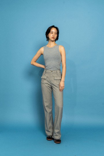 灰色毛料寬褲