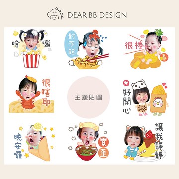 ▨ 訂購注意事項 ▨ **①貼圖訂購流程**➜ 確認訂購品項 ➜ 客製商品,一率先付清款項 ➜ 提供照片➜ 開始製作,7天交稿➜ 客戶確認稿件 ➜ 貼圖送審 & 上架 ➜ 提供下載連結。**②照片挑選**主題貼圖因為為套版,所以請務必將您挑選的照片比對插圖。 以免成品完成後覺得照片不合適要換照片。更換照片等同重新製作,需酌收費用NT$100。照片請提供正臉照,臉部沒有被(奶嘴,手,口水巾)遮蓋,且光線充足的照片。**③上架** 訂製貼圖,我們會提供上架的服務。貼圖上架會設定最低上架費用(靜態NT$30, 動態&隨你填為NT$60)只要訂購貼圖,完成後我們都會直接贈一組送到您提供的LINE ID。成功上架後會給您連結,到時候家人朋友可以透過連結購買貼圖唷!**④退款**下單代表已確認我們製作風格是您喜歡的,因此,貼圖製作中,製作完成後,不因接受其它理由進行退款哦。若在校稿階段,不滿意要退款,都會酌收製圖費,1張照片100元。**⑤出貨**客製化商品為保持出貨速率,若買家超過一週未回進度訊息,賣場會通報將pinkoi官方,並顯示已出貨,事後買家仍可繼續回覆訊息將訂單完成。 **⑥成品 最後成品僅供LINE STORE下載,無額外提供設計電子檔。**若有其他問題,歡迎私訊詢問**