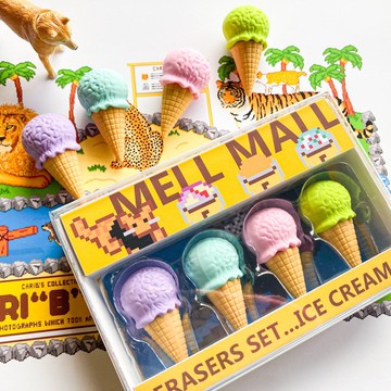 這是一組四入的甜筒造型冰淇淋橡皮擦。這些橡皮擦據說是在動物園「CARI"B"ZOO」園長海譜的攤位上販售的冰淇淋造型橡皮擦。【尺寸 (手工測量,僅供參考)】單個橡皮擦:42mm x 直徑22mm外盒:85mm x 120mm x 30mm※ 訂單成立後 2-4 個工作天內將透過 Click Post (日本郵政) 寄出。※ 圖片中的背景或道具僅為拍攝使用,不包含在商品內。※ 商品一經使用後恕不接受退貨,敬請見諒。