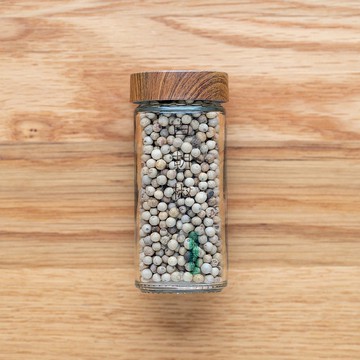 因為移除了胡椒漿果的外皮與果實,再加上有經水浸泡發酵的過程,使白胡椒的風味不像黑胡椒那樣濃烈直接,而是細膩內斂的徘徊在舌尖上,這也讓白胡椒具有較多元不同層次的風味。成分:白胡椒/淨重:50g/產地:馬來西亞、印尼