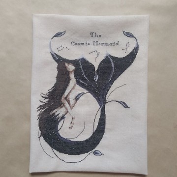 手工製作太空美人魚繪畫獨特的美人魚牆壁藝術成品十字繡