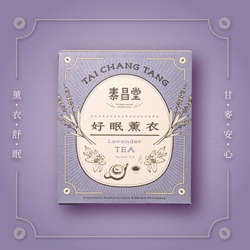 https://img.shoplineapp.com/media/image_clips/685e6f0f558ae8001015c9e7/original.jpg?1751019278https://img.shoplineapp.com/media/image_clips/68c13f3a4c38fa000cf0de46/original.jpg?1757495097=&owner_id=5fc09f1315c895002d1a77cahttps://img.shoplineapp.com/media/image_clips/67a47e78facf7c000a9d51a6/original.jpg?1738833528品名: 泰昌堂 好眠薰衣茶成分:薰衣草、酸棗仁、浮小麥、百合、紅棗、甘草容量: 每包約 8g±9%,一盒8包入廠商:泰昌堂參藥行地址:台北市中山北路六段208號原料產地:中國、台灣製造品管:台灣保存期限:未開封一年保存方式:陰涼乾燥處保存或冷藏使用方式:每包建議以熱水沖泡350cc,5分鐘後即可飲用。可回沖2-3次。也加入室溫涼開水約500cc,冷藏在冰箱一夜,作為冷泡茶飲。✔ 專業中醫師+資深掌櫃研發配方。✔ 100% 無添加,無咖啡因、防腐劑,無甜味劑。✔ 草本原料通過相關檢測。