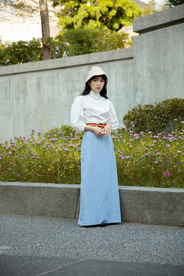 復古文青 羊毛格子半身裙