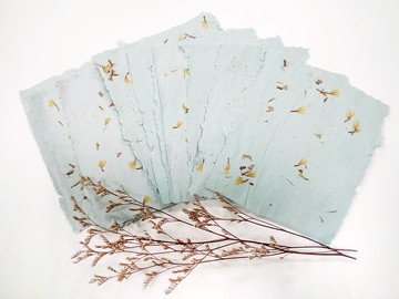 被機器絞碎的回收紙張,從水與日光中重生。混合了乾燥花、茶葉的紙纖維更添手感與些許香氣。每一張紙都有其獨一無二的紋路,屬於自己的個性。如此特別的日曬再生手工紙,最適合用來製作心意十足的手工卡片!規格:一套六入尺寸:約為 190 x 130 mm (B6)純手工製作,紙張厚薄不均為正常狀況不介意再購賣喔--__減廢環保愛地球,商品包裝採用回收再利用材料,但絕對會確保商品完整喔~__**若需禮物包裝,請點此加購****https://www.pinkoi.com/product/YTys8ApF**