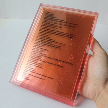 **鏡中倒影** 客製化賣場可以訊息討論你想製作的鏡子 ^^* 不想放歌詞, 只要顏色也可以哦 ▸▸ 材質環氧樹脂,顏料,玻璃片,投影片,壓克力鏡▸▸ 尺寸12.6 × 17.7 × 1 cm▸▸ 保存建議避免放置在陽光直射的位置。表面為玻璃材質,鏡子為壓克力鏡。中心是一個鏤空區域,創造出文字反射和漂浮的效果。玻璃表面可以用酒精濕紙巾清潔背面配有掛鉤,可掛在牆上展示。歡迎追蹤 IG 鎖定最新作品請搜尋 『顏奇藥局』 https://64.media.tumblr.com/ddcc59d3408948f993fe67216e786347/52d653acd3aa655e-8a/s750x500/85dfef4312ad431371268784a81dab4ab9726518.jpg彩色與迷幻與形狀,有時還有文字 -- 從各種奇怪形色人事物擷取靈感,進行對不同材質的冒險,創造繽紛詭奇的彩色作品紓解對顏色的上癮症。以藥局為名, 繼承來自科幻電影中的印象,閃著彩虹油漬光芒的畫面,像是各種疑難雜症都能對症下藥,精確明白的療癒感。以樹脂製作剔透彩色飾品與擺飾,將絢爛紛陳的顏色封存在幾何空間裡,成為生活中的點綴靈光。