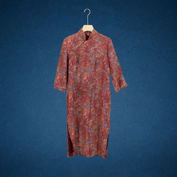 二手 咖紫配色 彩色印花 微厚 古董訂製 旗袍 OPF329
