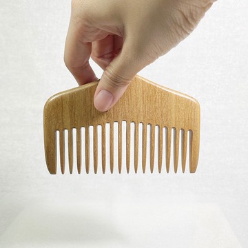 柚木・山形按摩梳|長11cm x 寬7.3cm x 厚1.1cm職人手工磨製而成,用時間換取到的是木頭溫潤、細緻的質感,散發出淡淡的木頭清香味。