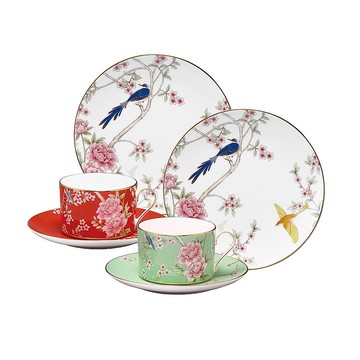 日本NARUMI 女王花園骨瓷雙人茶杯點心盤組