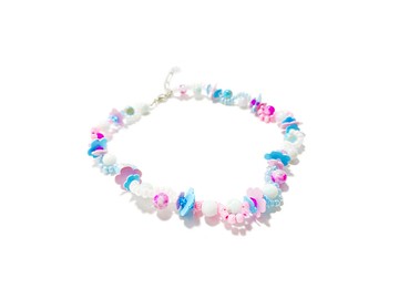 - Handmade polyurethane die-cut flower- Glass beads / Plastic beads / Glass spar / Crystal - Each die-cut flowers has their own unique shape- 40 to 46cm long - Total weight: 28g