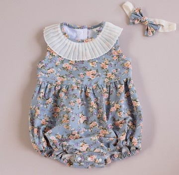 這款花布第一眼看到就很喜歡整個色彩設計就很有歐式宮庭低調奢華感布是有60%棉成分的彈性布有一定的厚度所以就加一個簡單的花邊做成無袖的款式有包屁款和一般的洋裝款可做姐妹裝包屁衣搭配髮帶超可愛的因為小baby大都躺著比較多扣子我都用一般传统開扣式的躺著幾乎感覺不到扣子的厚度如果喜歡一般的按壓塑扣也是可以換的唷尺寸有70(6-12m) 80(12-18m) 90(18-24m)另有送禮禮盒包裝可選購