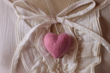 情人節送禮選擇 情人節禮物 愛心項鍊 手染 螢光桃紅色(大)