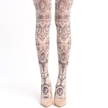 專為女性設計的復古風格花卉圖案褲襪