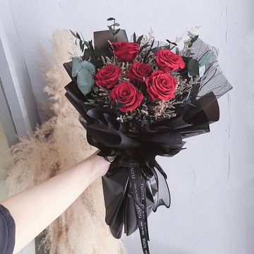 Flover芙拉花藝🌹實體門市:台北市松山區八德路四段247號🌹營業時間:10:00~19:00🌹Instagram:flover.yu|關於配送|▸黑貓寄送約1-3天,無法保證指定日期,下單請給最晚到貨日,通常會提前到。▸雙北LALA快遞,下單前請先私訊我們日期時段(中午前/下午),為避免無人收件,快遞出發前會先電聯收件人才出發。選用日本進口玫瑰經典款 玫瑰朵數可客製照片為6朵參考照|尺寸、規格|6朵-整體尺寸 寬約32cm 高48cm (手工測量誤差±3~5cm)內容物:花束*1 卡片*1 |花材|永生玫瑰、永生尤加利葉、卡斯比亞等|注意事項|▸ 黑貓可指定到貨日期時段,物流量大時不保證如期送達,建議提前到貨保留彈性時間▸ 寄送皆為紙箱包裹才能保護花禮,除特別標明外無特殊精美禮盒包裝。▸ 賣場皆無現貨採接單製作,下單付款後2~3個工作天內(不含假日)出貨,急單與大量訂購請先來電詢問。▸ 植物生長各有異,沒有對稱或完美無瑕花瓣,完美主義者請慎思。▸ 花禮均為手工製成,成品不會與照片完全一模一樣,若遇花材缺貨,設計師將會以類似色系調整更換花材。▸ 乾燥花寄送過程難免會有些許掉落情況屬正常現象。|保存方式|▸ 保持乾燥環境,避免潮溼與強光日曬,若有灰塵可用小刷清除。▸ 永生花若受潮,會有花瓣透明或出油情況,建議加強除濕(可放置除濕機附近加快除濕)。▸ 保存良好環境可放置數年,仍會隨著時間自然褪色風化掉落屬正常現象。