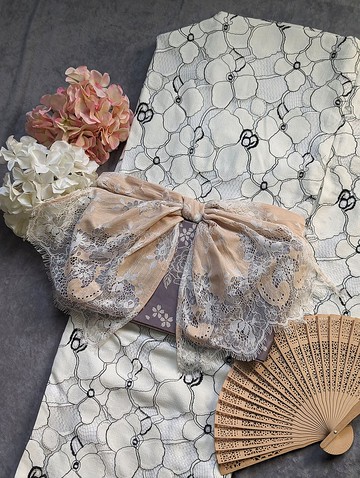 【洋粋youiki】原創和洋風格。帯揚|帯揚げ。粉膚色蕾絲