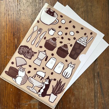 貓 x 咖啡廳主題的L型資料夾。