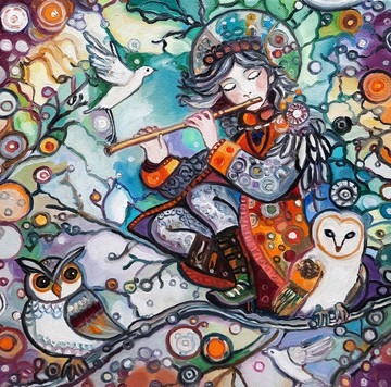 原創畫 男孩與鳥 繪畫 原創藝術 油畫 油畫