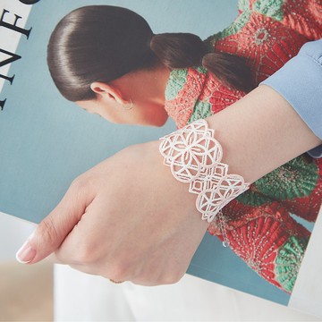 【禮物】Merida幾何蕾絲捷克水晶 純銀手鍊/手環-淺粉+象牙白