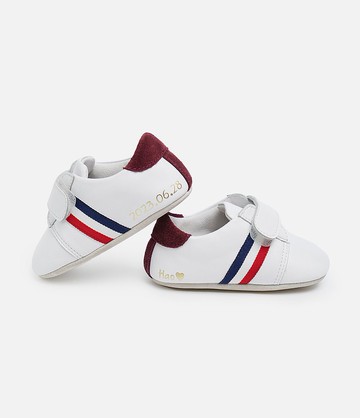 https://live.staticflickr.com/65535/49532711913_10ee5689a2_b.jpghttps://live.staticflickr.com/65535/49533208501_8d101a9044_b.jpghttps://live.staticflickr.com/65535/49532711788_2cb597341b_b.jpghttps://live.staticflickr.com/65535/49532711768_25abb1653b_b.jpg寶寶的第一雙鞋送一雙鞋子也許不是特別貴重但意義卻是一輩子當孩子長大了鞋子變成一種幸福的想念爸爸媽媽老了依舊會永遠記得曾經牽著手一步一腳印的風景人生中最美好的記憶之一為了讓爸比媽咪安心購買讓寶寶穿著時更加透氣及柔軟舒適THOUZANDS的每雙寶寶鞋皆使用全真皮製作材料經過歐盟認證核准搭配客製化烙印做出專屬於全家人的印記材質:鞋面:白色牛皮/酒紅色反毛牛皮內裡:白色豬皮鞋底:米色反毛牛皮產地:台灣製造訂購方式:**選擇尺寸大小和燙金字體及客製內容**,即可做出專屬於寶寶的第一雙鞋 ** 一、尺寸大小** 鞋內長度 - 適合年齡 size 1 : 10.2 cm – 0-3M size 2 : 11.1 cm – 3-6M size 3 : 11.9 cm – 6-9M size 4 : 12.8 cm – 9-12M size 5 : 13.6 cm – 12-18M **二、燙金字體 (3擇1,限10字內)** 字體3 字體6 字體20 **三、禮盒顏色 (2擇1)** 粉色 藍色訂製時間 : **付款後請於三日內聯絡設計師**,確認禮盒顏色、燙金字體及客製內容後才會製作,訂製需5-10個工作天,依訂單狀況及訂製數量而定,訂單較多時依順序回覆交期,若有指定交期,請先行告知,會依訂單狀況回覆是否可以達成-----以下請詳閱並務必注意-----1.\t由於每個人的電腦/手機螢幕設定不同,收到的商品時顏色可能會有些微差異,商品顏色皆以 實品為主2.\t**客製化商品,與客人確認客製部分後,不接受七天無條件退貨退款!** 3.\t商品皆為天然染色皮革,避免寶寶將其商品放入口中4.\t每個訂製品實際縫線可能產生稍與商品照有所不同情況,此並非瑕疵5.\t每塊皮革會有不同紋理、皺摺,甚至是傷疤或斑點,這也是皮革商品的特別之處,此並非瑕疵6.\t若商品到貨後有任何問題,請於三天內與我們聯繫