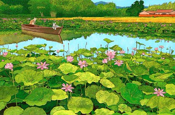荷花畫睡蓮花卉原創藝術抽象花卉藝術品池塘